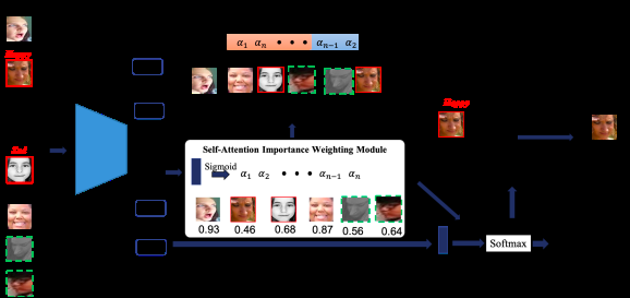 Self-Attention Importance Weighting Module. 提取的表情特征F_i经过全连接层,Sigmoid激活函数可以得到对应的权重\alpha_i。