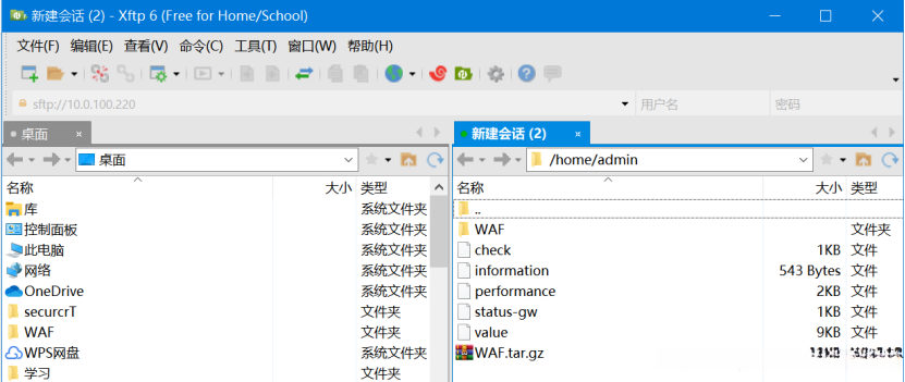 (5)在/home/admin下可以看到WAF.tar.gz文件