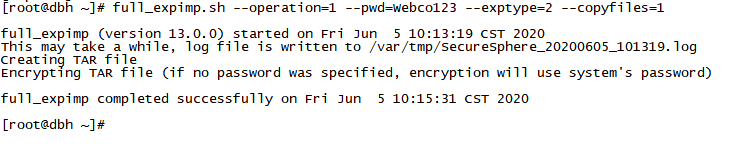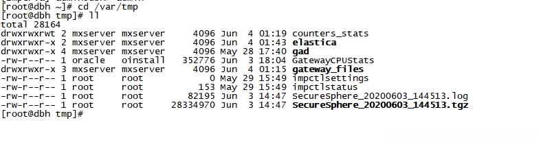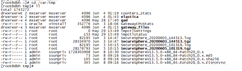 (2)完成备份后,在/var/tmp目录中生成了两份文件:其中SecureSphere_20200603_144513.log用于记录事件动态,另一份则作为备份存储。