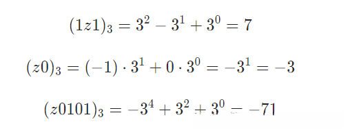 平衡三进制是一种特殊的三进制系统,其基数为3,并采用-z、0、+1(分别用z、0、1表示)来表示每一位数字。与传统三进制不同的是,在此系统中用字母z代替了通常意义上的-1。这种特殊设计使得该系统具有以下显著优点:无论处理正整数还是负整数,每个整数值都有且仅有一种唯一表示方式;而无需使用负号即可表达负数值。这种特性使得平衡三进制在某些计算领域(如计算机科学和光子计算)中具有潜在的应用价值。