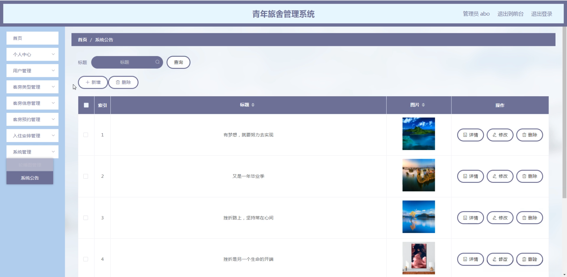 随着旅游业的蓬勃发展和背包客文化的兴起,青年旅舍作为一种经济实惠、氛围独特的住宿方式,受到了越来越多年轻旅行者的青睐。为了提高旅舍的管理效率和服务质量,设计一个高效、便捷的青年旅舍管理系统显得尤为重要。