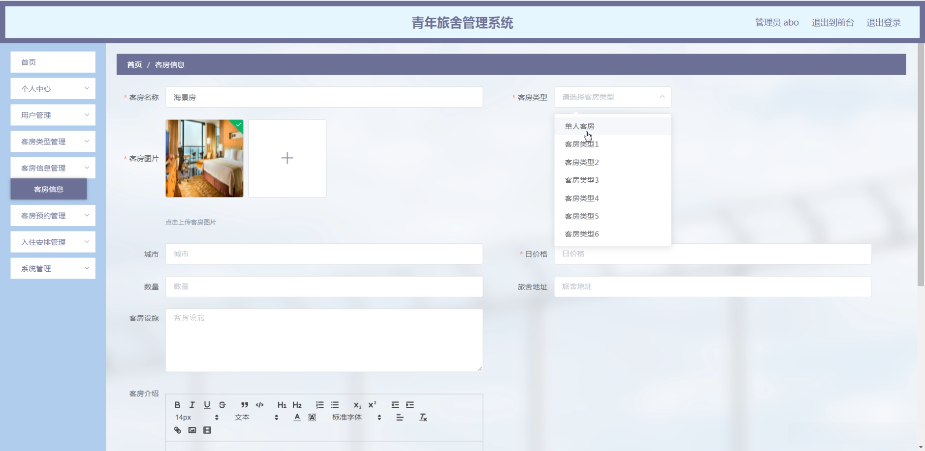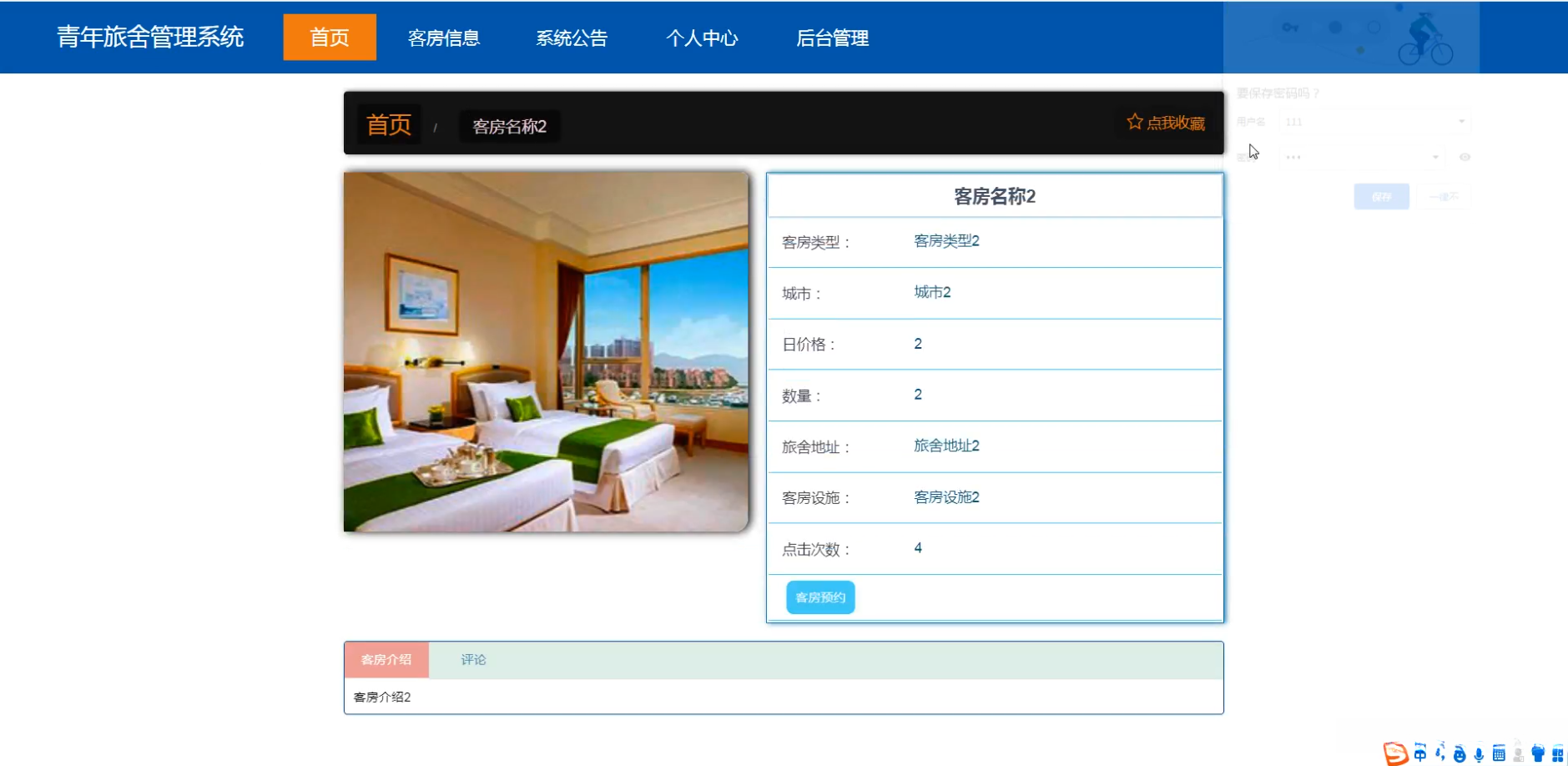 本项目旨在通过开发青年旅舍管理系统,实现旅舍房间的在线预订、入住登记、退房结算等功能,简化旅舍的日常管理流程,提升旅舍的运营效率和服务水平。同时,系统还可以为旅客提供在线预订、支付、评价等一站式服务,提升旅客的住宿体验。
