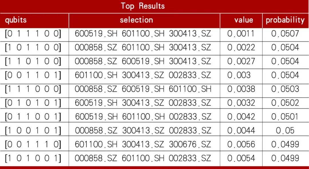 鉴于金融市场中存在着大量的资产组合配置、投资组合构建等优化问题,QAOA算法在金融市场表现出巨大的应用潜力。 以基于QAOA算法的股票组合优化为例:拟从N只股票中选择M 只股票,将所选出的股票进行等权重组合,构建为权益类资产策略。组合的风险可以用期望收益率的波动率来衡量。其中,期望收益可通过各只股票的收盘价进行计算;波动可以通过所选股票之间收盘价的协方差矩阵进行计算。因此,借鉴QAOA算法解决最大分割问题的思想,可以找到一种特定的组合,使得在达到期望收益目标的前提下,使得组合内股票间的相关性尽可能小,从而起到降低风险、优化组合表现的效果。
