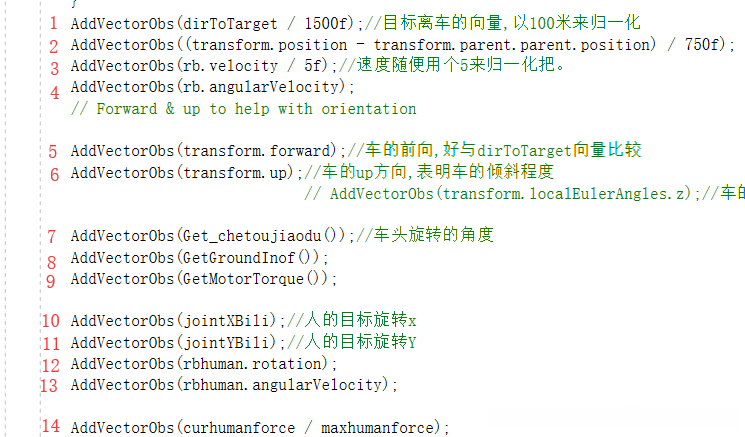 图中标号1,代表在世界坐标系下车目前离目标的距离的向量(状态+3),并且用1500m来归一化(因为直线赛道我设置了1500米长,注释里的100m请无视),因为3d环境,所以向量是三维的,也就是已经有三个输入了。