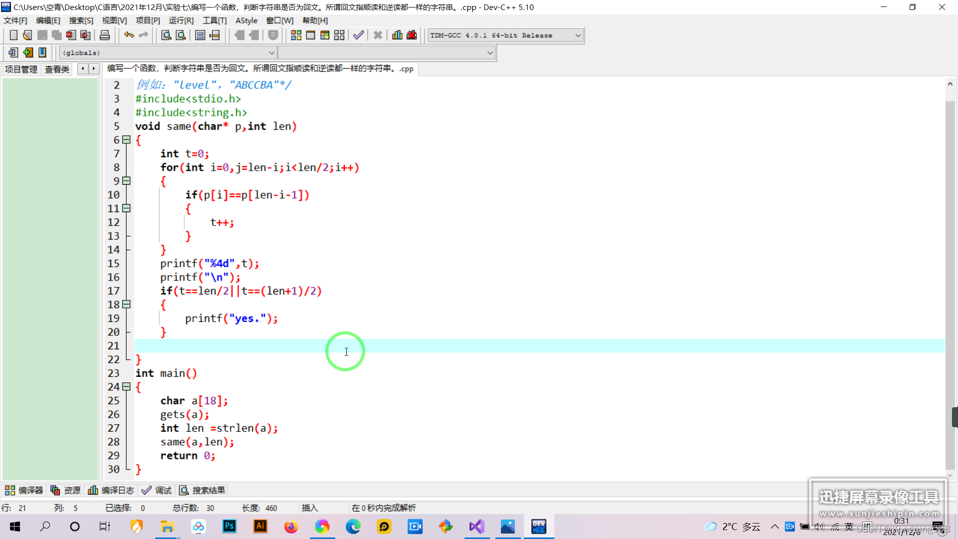 /*编写一个函数,判断字符串是否为回文。所谓回文指顺读和逆读都一样的字符串。
