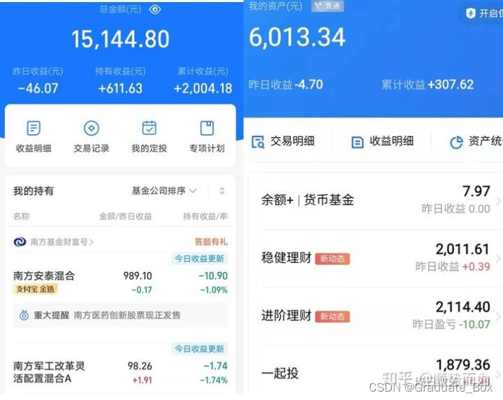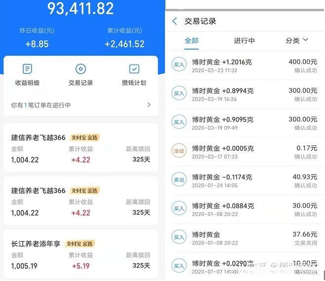 2020年年初有了一些闲钱以后,开始通过支付宝接触理财产品、黄金和基金,最先买的黄金,期初只买了10块钱的黄金,后来加到了1000多,年前赚了100多块钱,年后赔的只剩下了7块的利润,果断跑路了。之后有买了几款理财产品,共投入9W多,年化收益在4.4左右,目前赚了将近2500。基金截止2月底赚了2300左右(春节前赚了将近4000,一周赔了1000多,难道我是韭菜吗?),基金共投了2W左右,其中较稳定的债基占了大约25%,后期我会再写一期炒基金的经历。