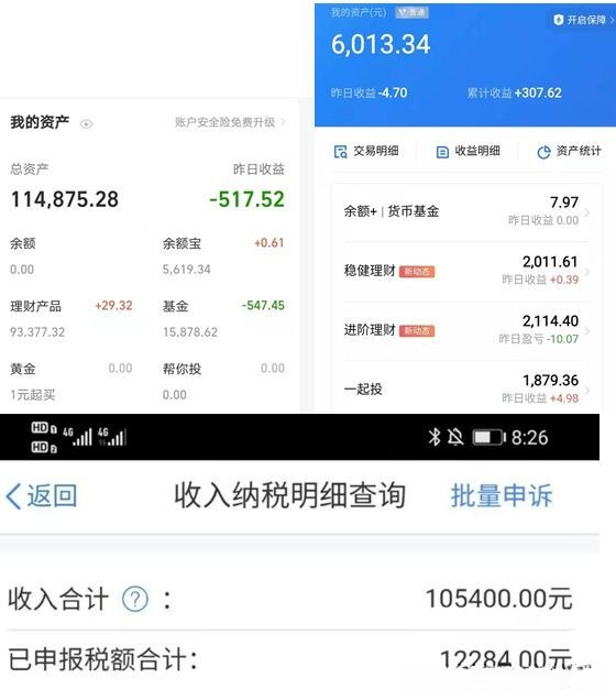 上图包含三个小图,分别是蚂蚁财富账户、腾讯理财通账户和2020年收入和纳税额,根据新的税收政策,将会退税11000左右。
