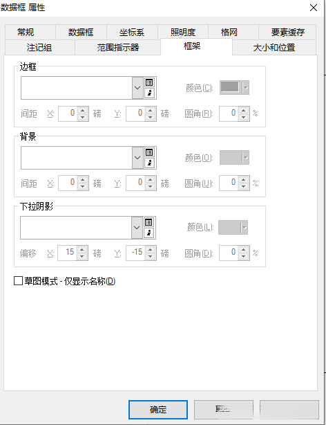 - 如无需数据框边框,可在数据框属性下的框架设置中移除边框线。
