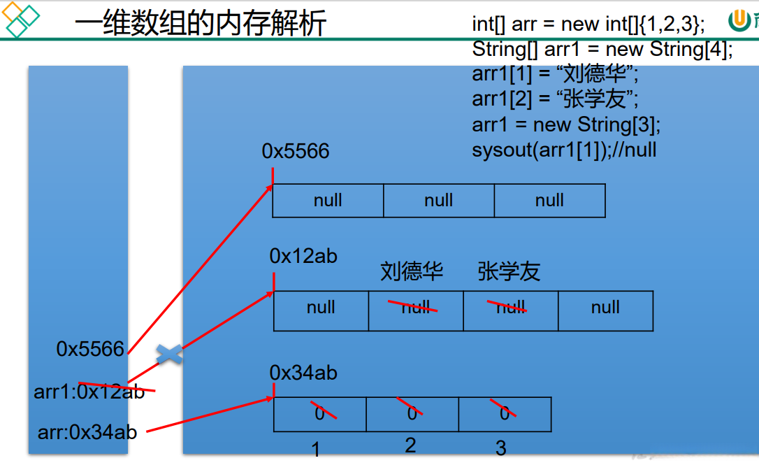* 2)数组属于引用数据类型的变量。数组的元素,既可以是基本数据类型,也可以是引用数据类型