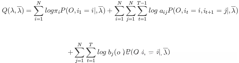 这一概率值便是我们在概率计算问题中所关注的核心内容。对于固定的参数值而言这是一个常数项。因此我们可以将其乘积应用到原先设定的Q函数上从而使得Q函数得以简化形成新的形式: