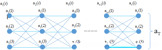 前向算法: 直接计算算法很简单便捷,但是计算量很大,假设状态集合