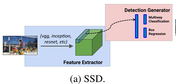Single Shot Detector (SSD):文中将SSD被定义为通过单个前馈神经网络直接用于预测类别以及anchor偏移量的方法,并不依赖于逐proposal阶段的分类操作。此外,Multibox与RPN均采用了这种方法来进行类不可知(class-agnostic)的目标检测。