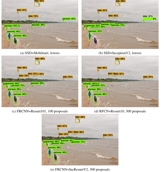 d)文中探讨的一些meta-architecture与feature-extractor的组合尚不为人知,在以往的研究中仍未被报道过。其中一些具有创新性的组合成功训练出COCO object detection challenge的制胜武器。