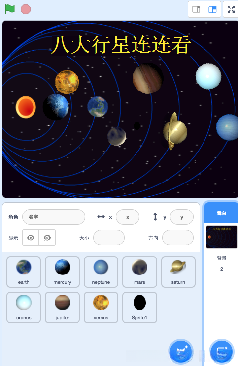 scratch少儿编程航天主题:认识太阳系-八大行星连连看