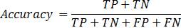 随着分类器的应用,有必要使用相应的措施来评估结果作为生成的模型的稳定性情况的验证。因此,采取以下措施:混淆矩阵:真阳性(TP),真阴性(TN),假阳性(FP),假阴性(FN)。