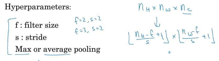 值得注意的是:池化过程中的 超参数有滤波器尺寸f和滤波器步进长度s,没有需要学习的参数,也就是反向传播的时候没有参数需要更新。它是一个静态属性。