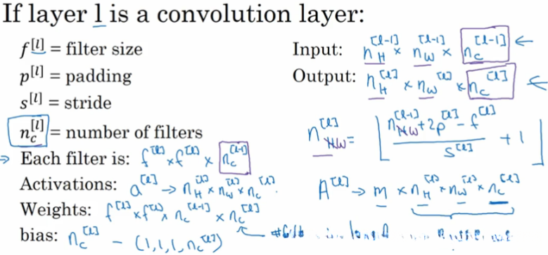 若输入图片的尺寸为n x n x ,filter尺寸为f x f x ,则卷积后的图片尺寸为(n-f+1) x (n-f+1) x 。其中, 为图片通道数目, 为滤波器组个数。也可以增加padding或者改变步长s,计算方式如上。
