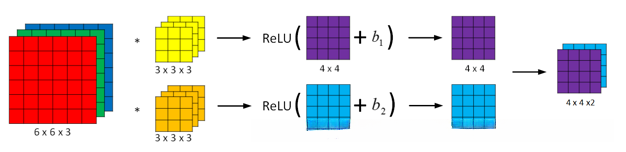 卷积神经网络的单层结构如下所示:(两个过滤器)