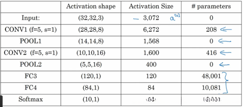 可以看出大部分参数都在全连接层,卷积层参数很少,POOL层没有参数,激活值的尺寸是逐渐降低的,事实证明如果降低速度过快会影响模型性能。