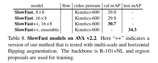 表格9:Slow_only与SlowFast在AVA动作检测中的基准性能。