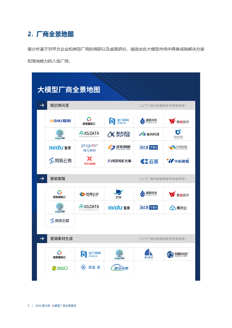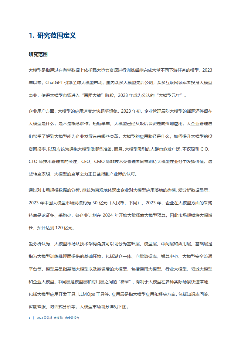 本节重点介绍大模型技术领域的深入分析报告:爱分析研究院发布的《2023年大模型厂商全景图鉴》