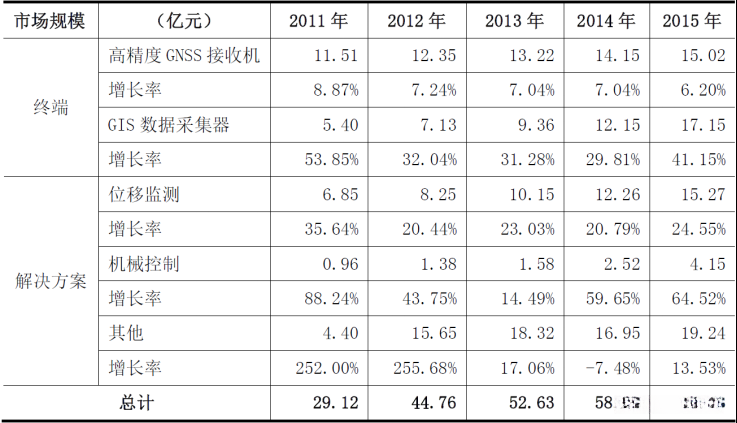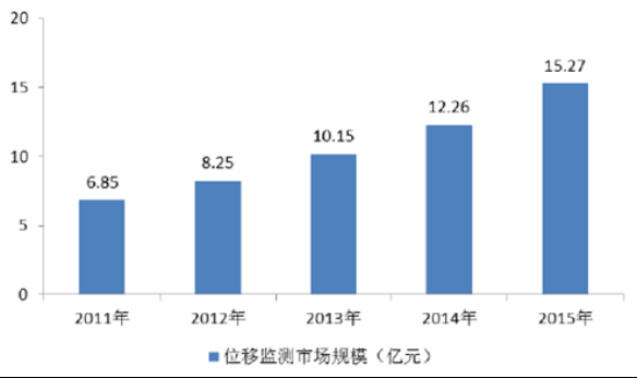 据统计,2015 年,中国卫星导航位移监测市场规模达到15.27 亿元,同比增长24.55%。