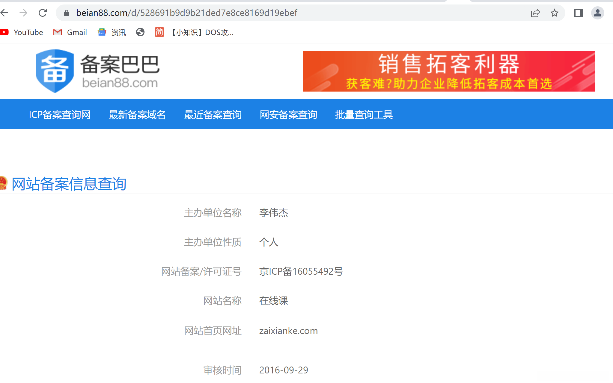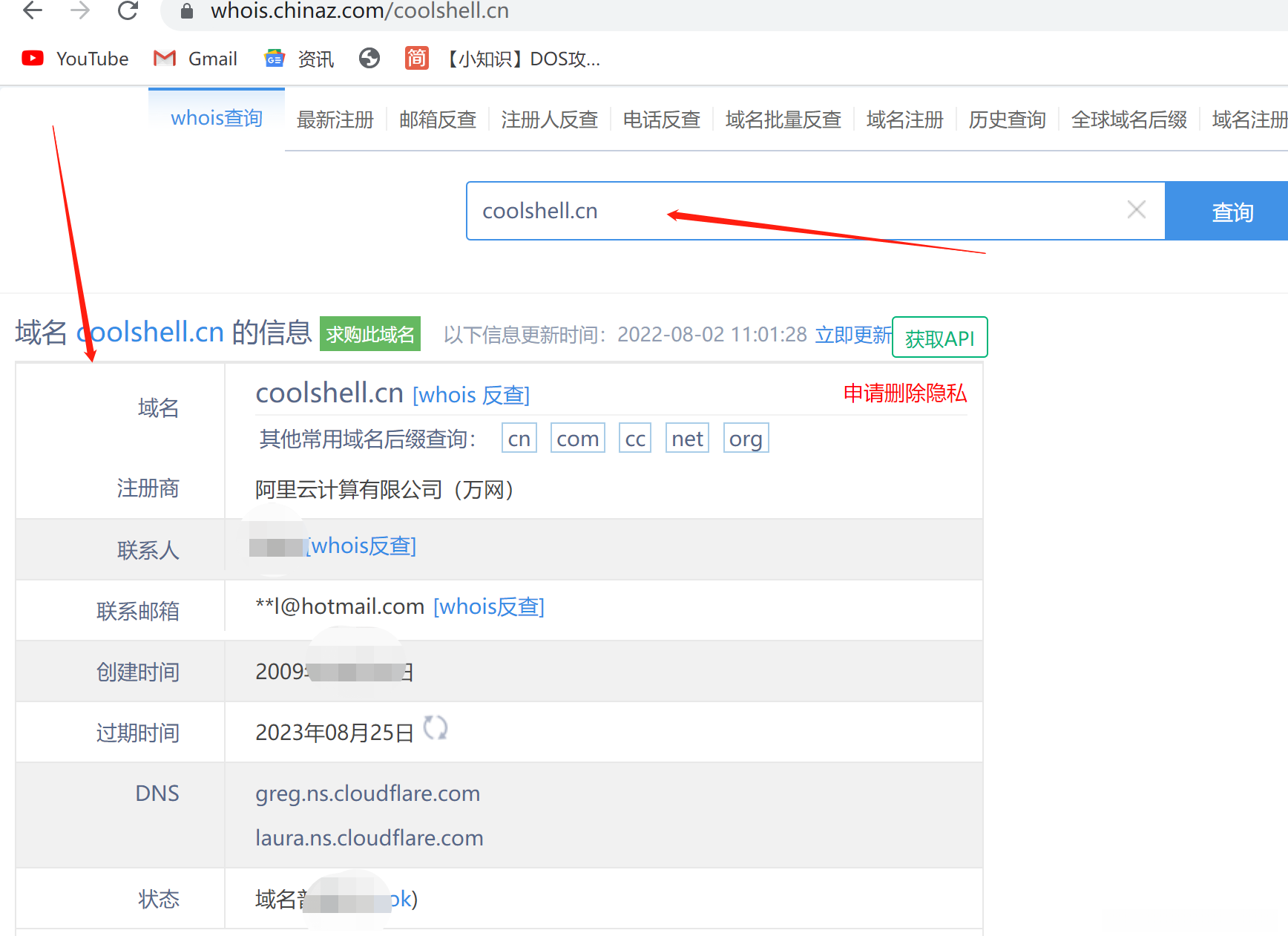 通过查取域名的信息,可以得到法定人的姓名、邮箱(钓鱼)和联系方式,为渗透测试提高一定的基础,比如说会把名字生日.....,作为密码。