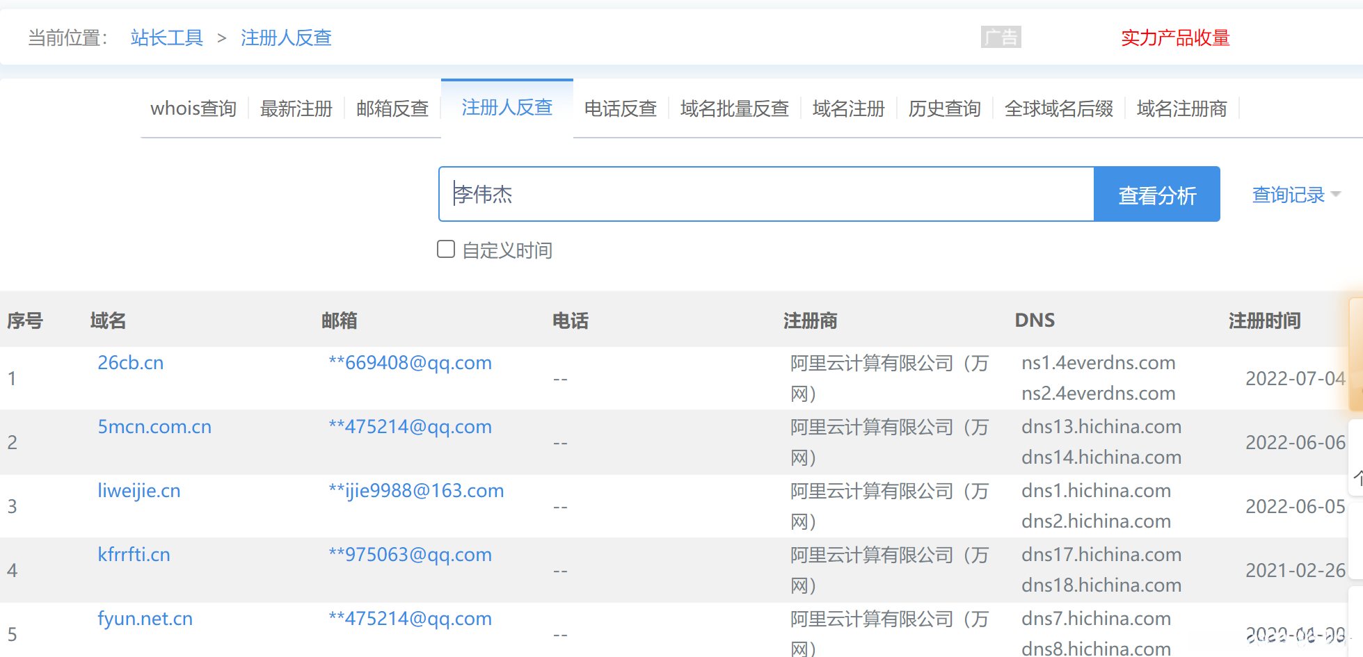 域名不仅包含了所有人的邮箱地址以及联系方式