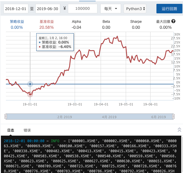 # 定义一个全局变量, 保存要操作的股票# 方式一:操作一只股票# g.security = '601318.XSHG' # 中国平安股票# 方式二:操作多只股票# g.security = ['601101.XSHG', '601106.XSHG']# 方式三:操作指数成分股'000300.XSHG'# 沪深300'use_real_price', True)