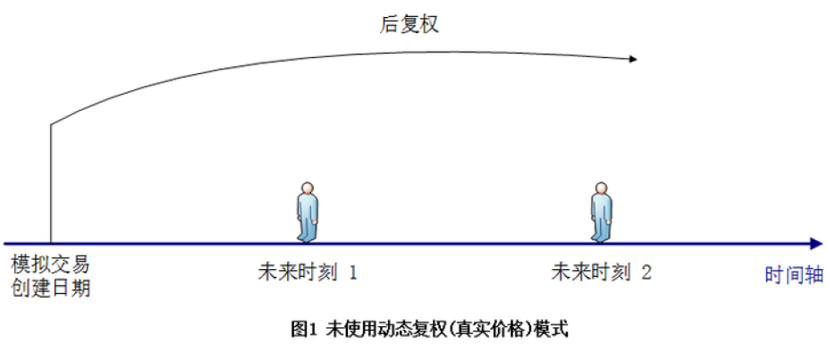 在模拟交易中,在未开启动态复权(真实价格)模式时,我们是使用基于模拟交易创建日期的后复权价格。