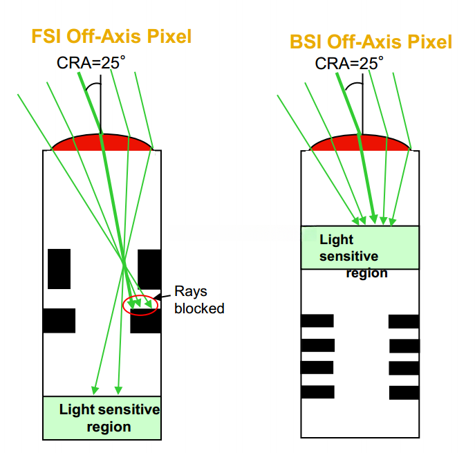 因此就FSI传感器而言,在大多数情况下会通过调整Micro Lens的位置以获取更多光线: