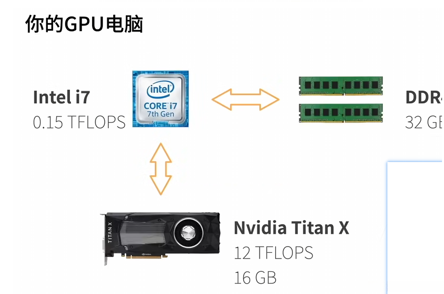 图片左侧是Intel Core i7处理器,右侧是NVIDIA Titan X显卡。