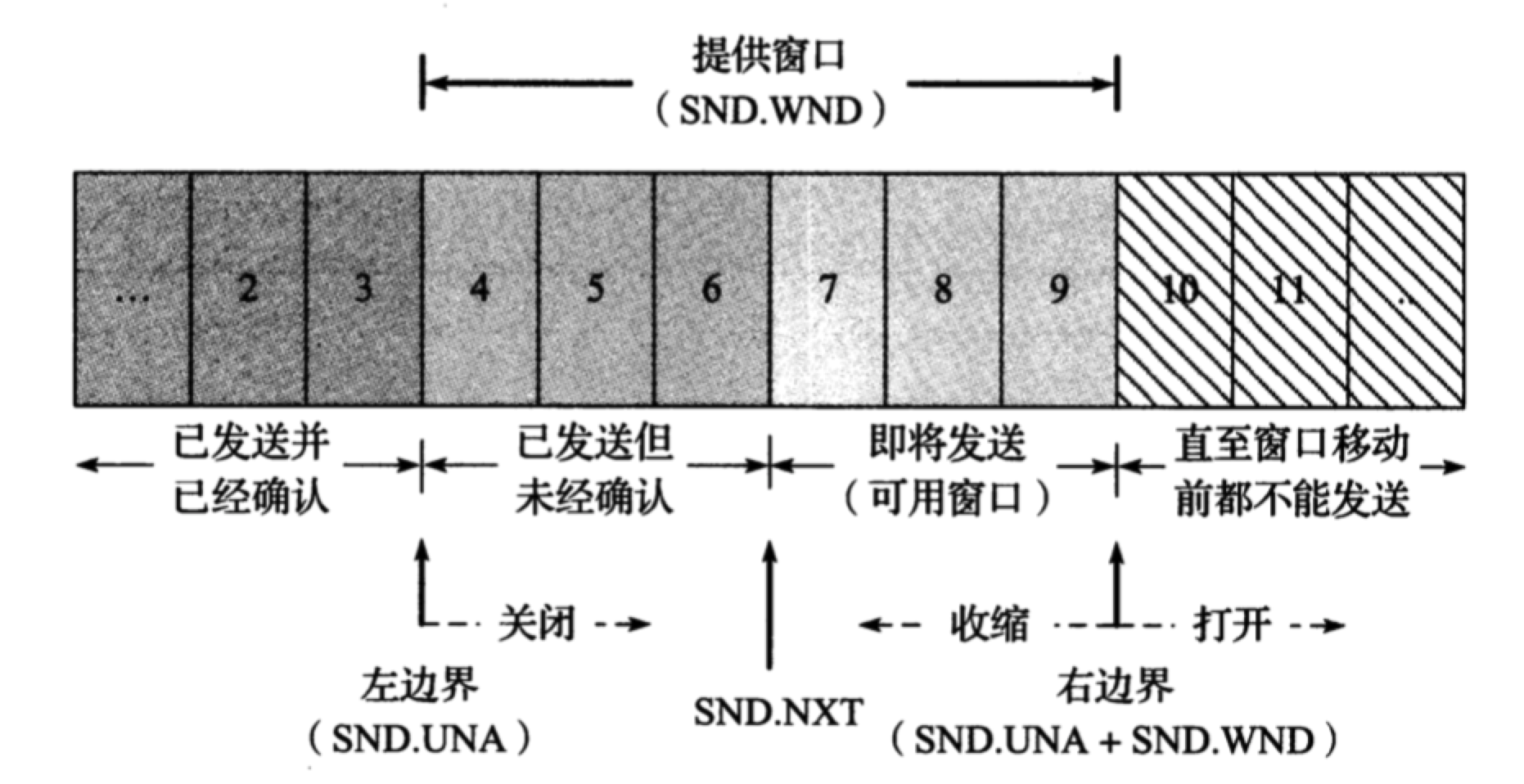 - 关闭 close : 窗口左边界右移. 当已发送数据得到 ACK 确认时, 窗口会减小.