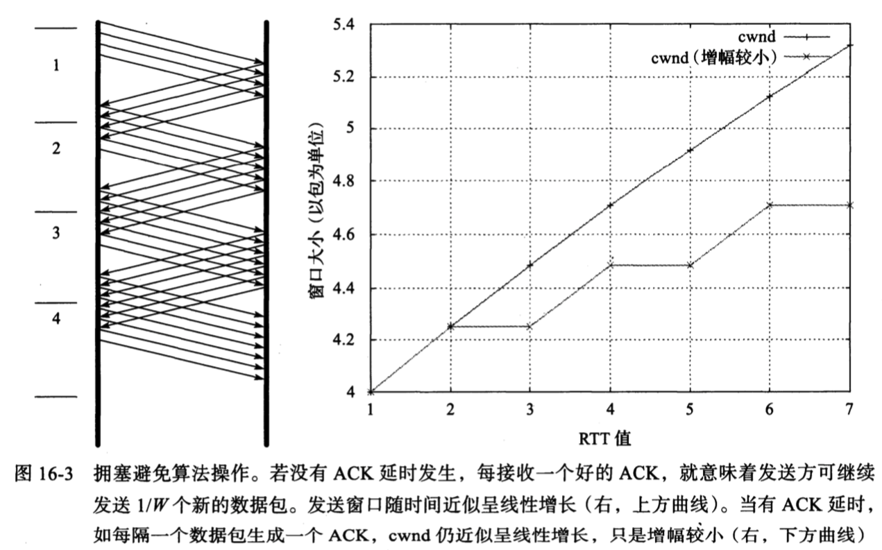 - 一旦确立慢启动阈值, TCP 会进入拥塞避免阶段, cwnd 每次的增长值近似于成功传输的数据段大小. 更新公式如下