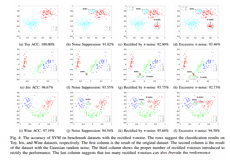 从三种学习模型中,很容易得出π噪声存在的结论,消除纯噪声的负面影响,校正学习系统。这给我们的启示是,加入一些适当的随机噪声点,而不是检测现有的纯噪声并去除它,也有助于提高性能,这为研究鲁棒模型提供了一种新的方案。