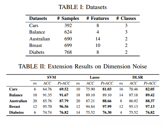 最后利用经典的线性判别分析(LDA)[21]来检验π噪声是否可以纠正降维的表现。