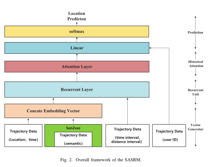 🔺在两个真实生活中的语义轨迹数据集上的实验结果表明,SASRM在准确性上优于几个最先进的模型。