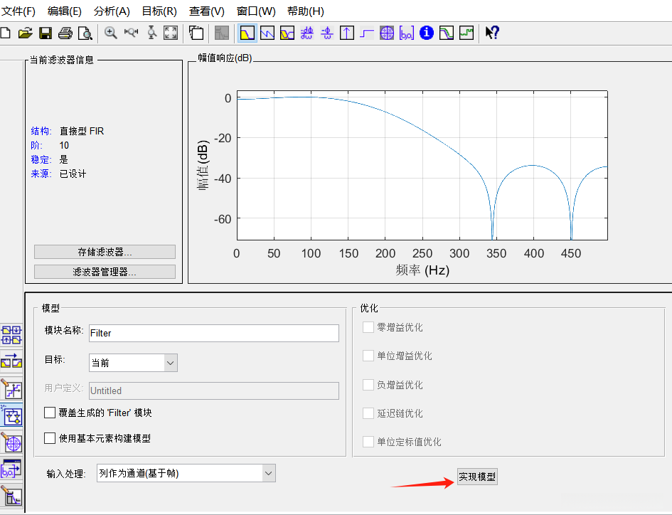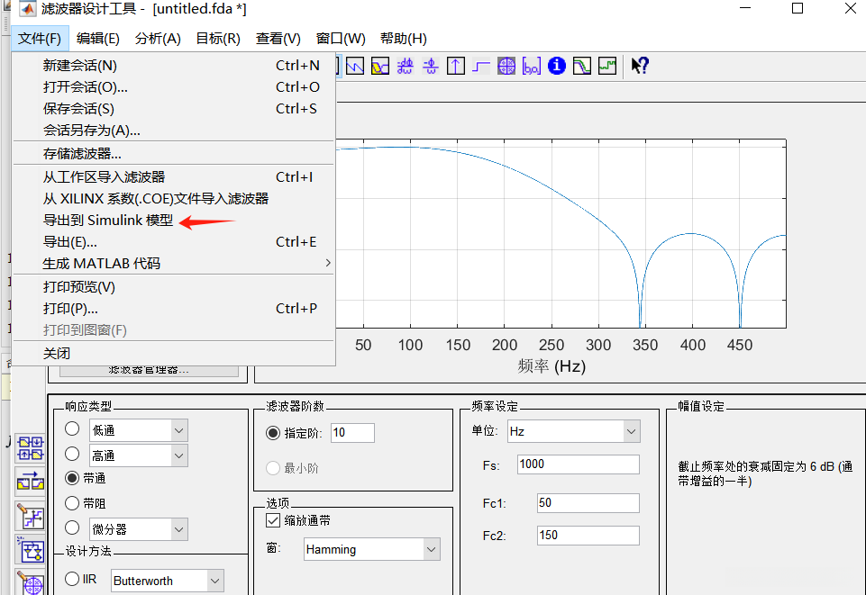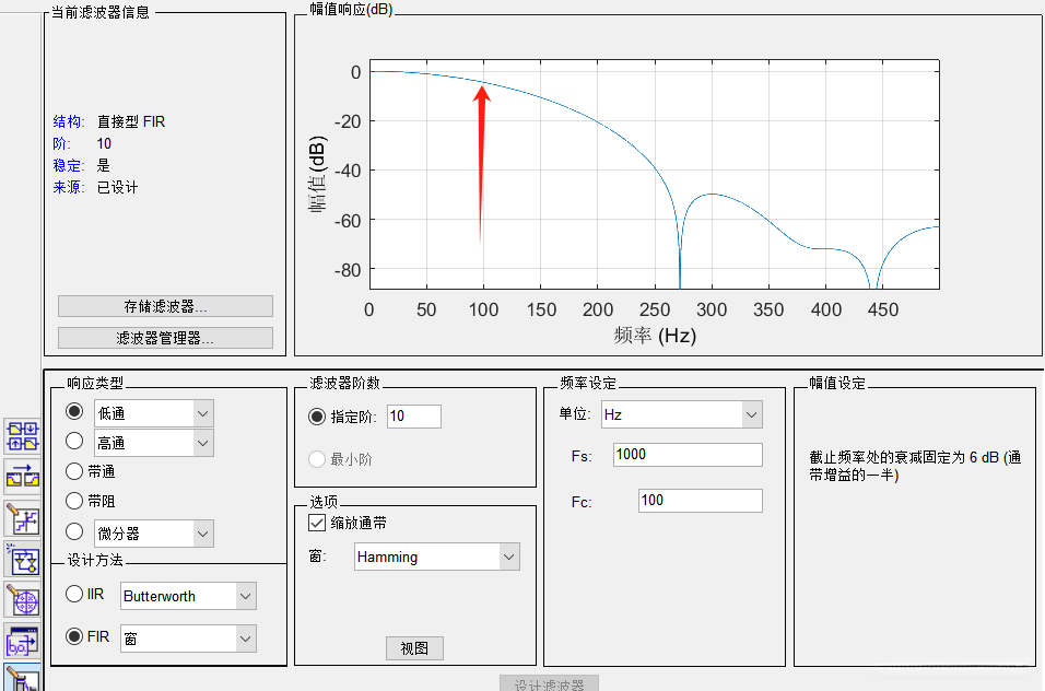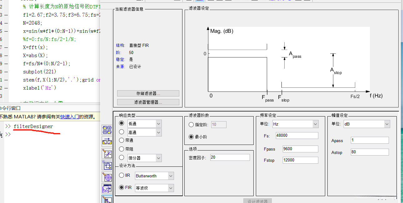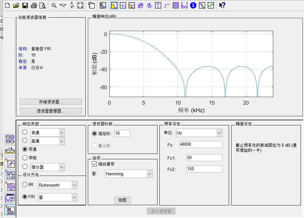 现在命令窗口输入filterDesigner执行,出现如图所示界面