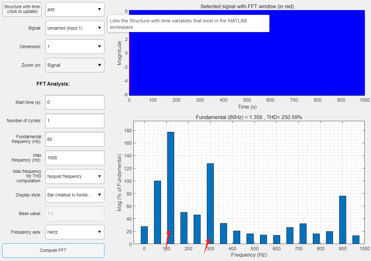可见最高两条即为对应的调制信号,刚好在100Hz和300Hz附近,符合!