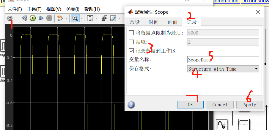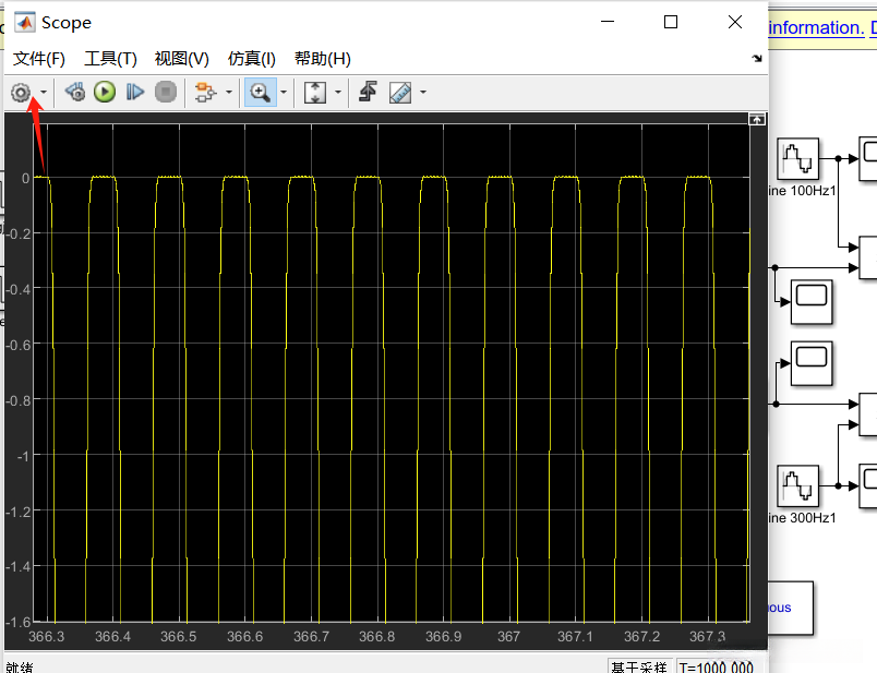 点开我们想要分析频谱的波形scope模块,点击配置如图