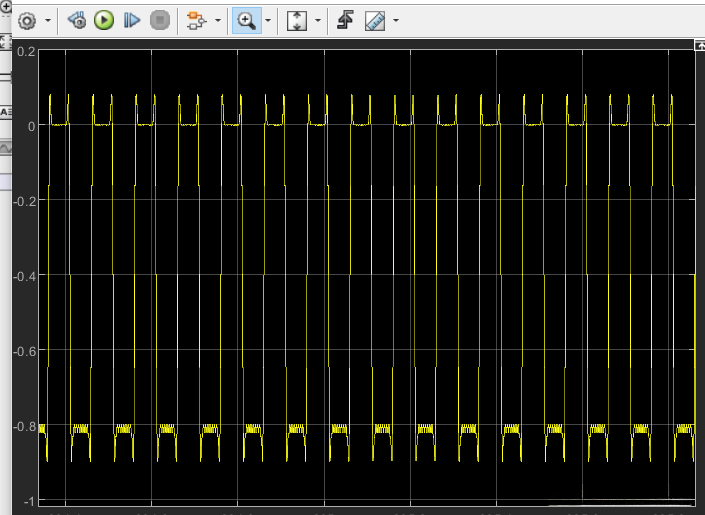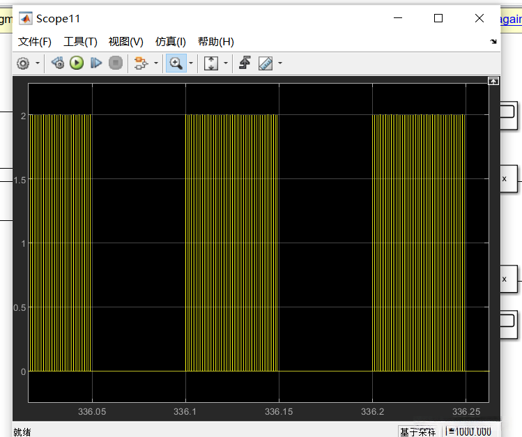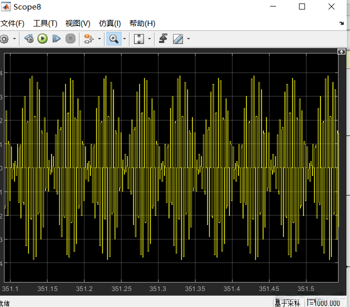 因为方波不能直接实现离散采样,在使用具有趋近于零的占空比、频率设置在1千赫兹、幅度设定在1伏特的矩形脉冲信号congjipulse(类梳状函数)时,并将其与自身相乘以完成采样的过程,请参考图示位置。