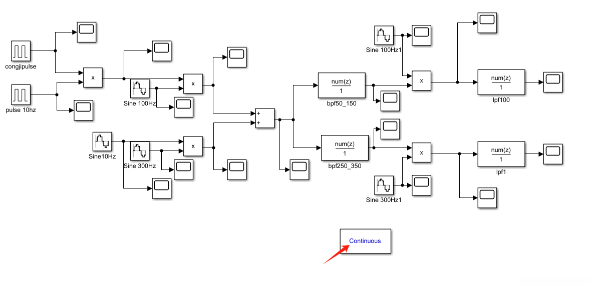 我们只需滤除基带信号即可实现通信链路中的数据传输。其中心频率即为基带信号的频率,在确保系统稳定性的情况下建议设置得稍高一些以避免可能出现的问题。根据傅里叶变换的相关理论,在频域处理时正余弦函数会分别对应于一个频率的相加与相减操作,在这种情况下取中间频点更为合适。在此基础上,在后续设计中我们将两个低通滤波器的截止频率统一设定为100Hz以简化系统架构并提高频谱利用效率