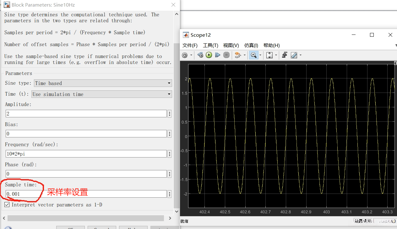 基带信号2为频率10Hz,幅值为2V,采样频率为1KHz的正弦波:
