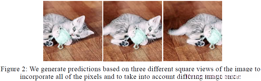 通常图像的有用信息包含在不同的尺度上(image contains useful predictive elements at different scales),本文在三个尺度上进行预测:256、228、284,其中放大图像((scaling an image up)、缩小图像(scaling an image down)时采用双三次插值(bicubic interpolation);不使用抗锯齿滤波器(anti aliasing filter)。