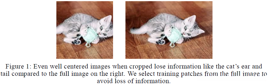 本文将图像沿短边按比例缩放至256 \times N(N \times 256)像素,然后随机裁剪出224 \times 224区域作为训练图像。
