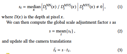 我们采用单目视频作为输入数据,并基于此估计相机参数以及具有密集空间分布的几何稳定特征的深度图。值得注意的是这些几何特征不仅在于深度图避免闪烁现象更在于各帧之间的空间一致性特征。我们的核心思想是通过多方法融合来提升深度估计的整体性能:首先利用现有的单图像深度估计网络进行初步估计(不一定是稳定的),然后结合传统重建方法提取几何约束以进行精细优化从而生成具有几何一致性的深度图。