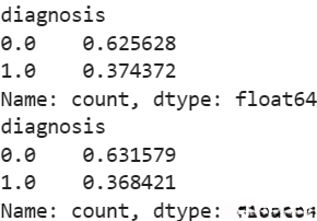 可见,训练集和测试集中不同类别的样本分布趋向一致。现在,我们可以开始构建乳腺癌诊断模型了。