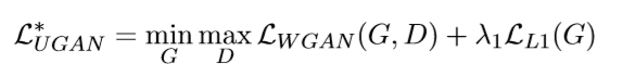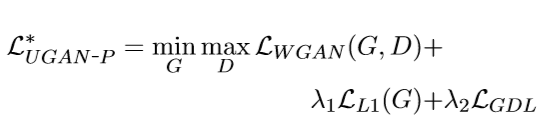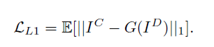 Px: 连接来自真实数据分布与生成器分布之间的对应点样本;λ_{GP}: 权重因子。为了模仿真实数据并捕捉图像中的低频细节,在这里采用了L1损失函数: