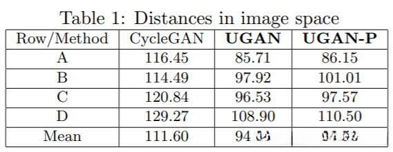 随后, 研究者通过图像空间中的距离特征、梯度变化程度以及均值与方差等指标对A/CycleGAN、UGAN及其改进版本UGAN-P这三种方法进行了评估分析