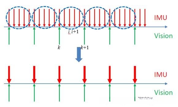 即可对对应图像帧采集到的 IMU 设备执行预积分操作。